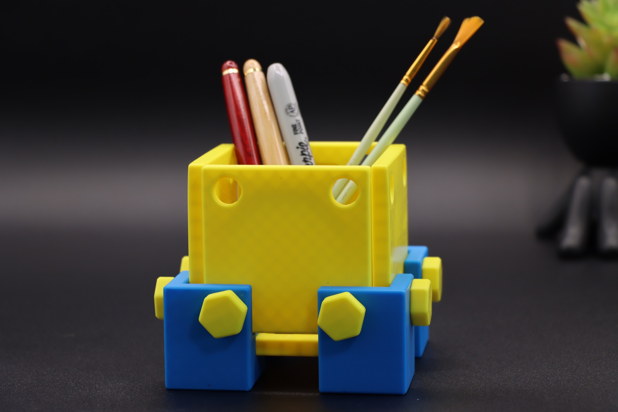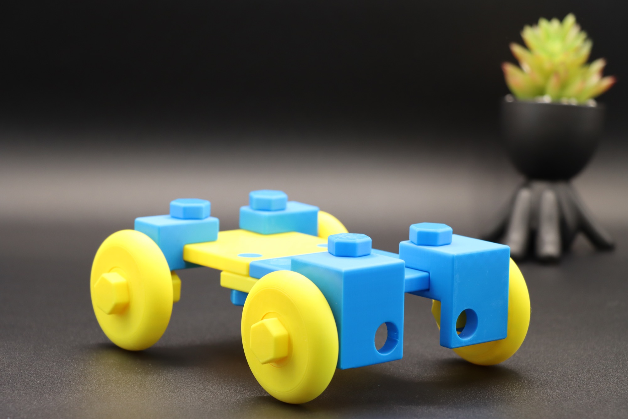 However, you can use them to make anything you can think of. Other ideas I had were: Pen holder, toilet paper holder, plant holder, toothbrush holder, baby cart for fun! Yes, Edilgen Blocks have “the Wheel” compatible with other blocks.