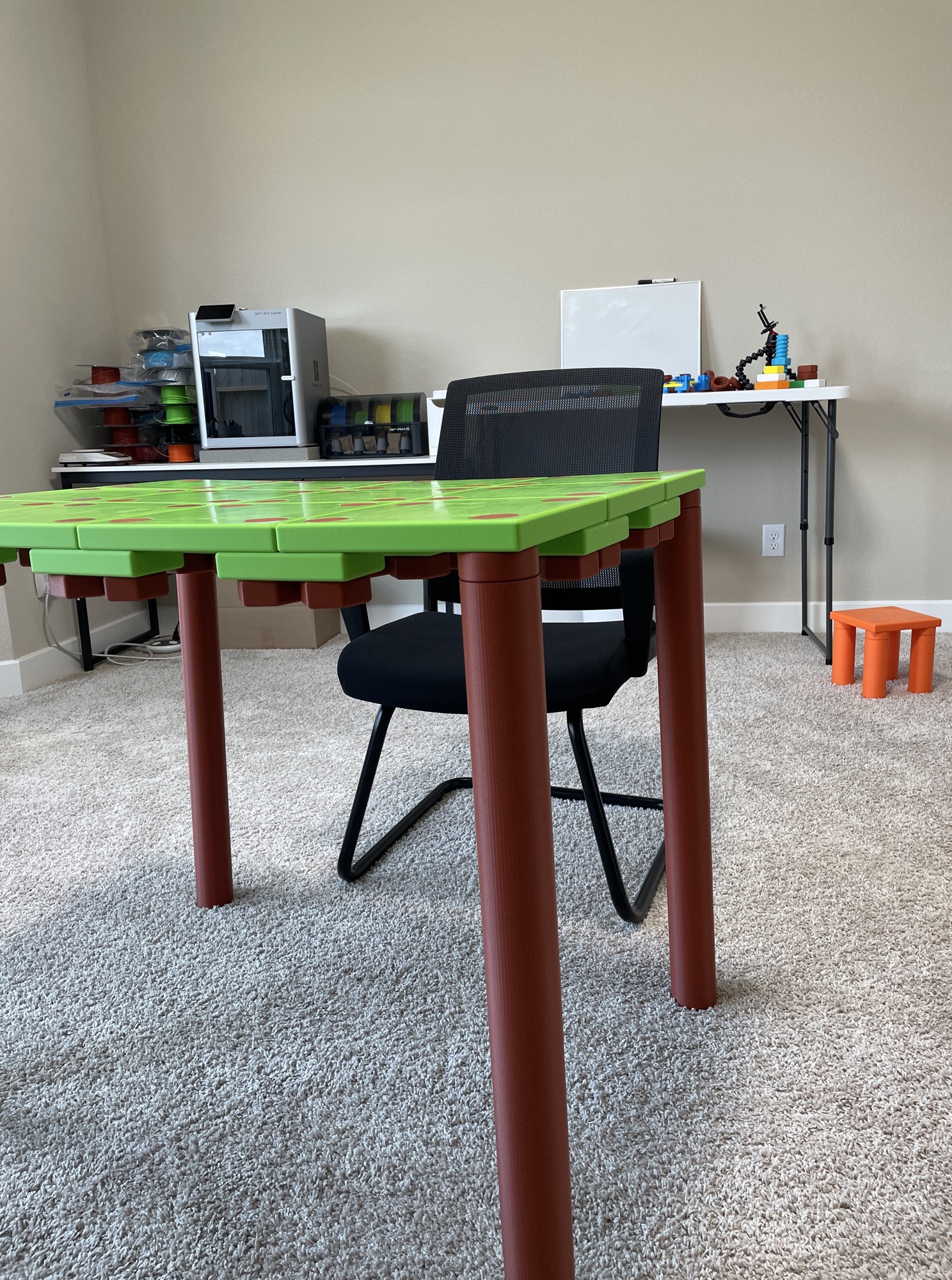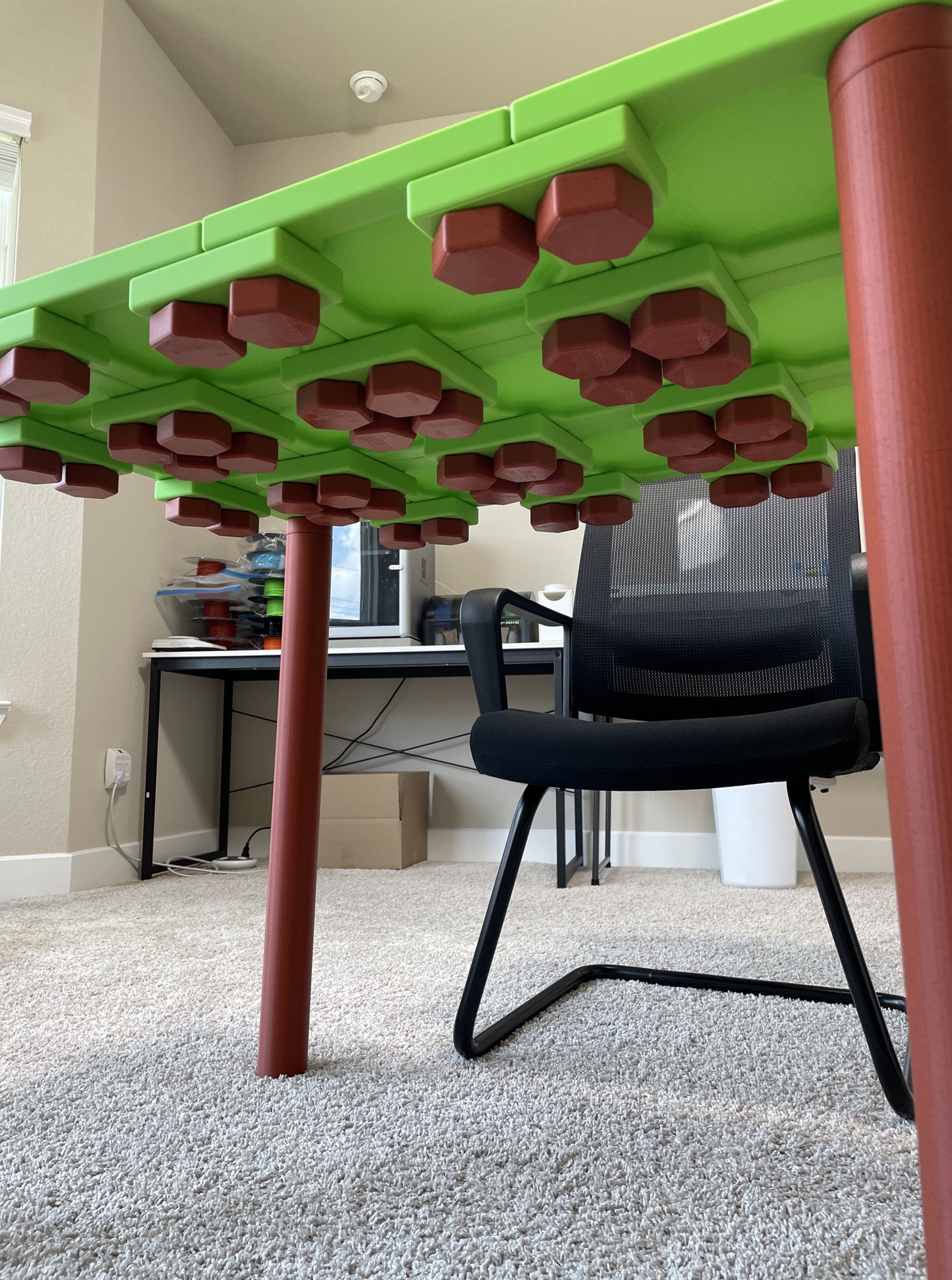 Downloadable 3D models are human size, like you can make yourself a desk with them.